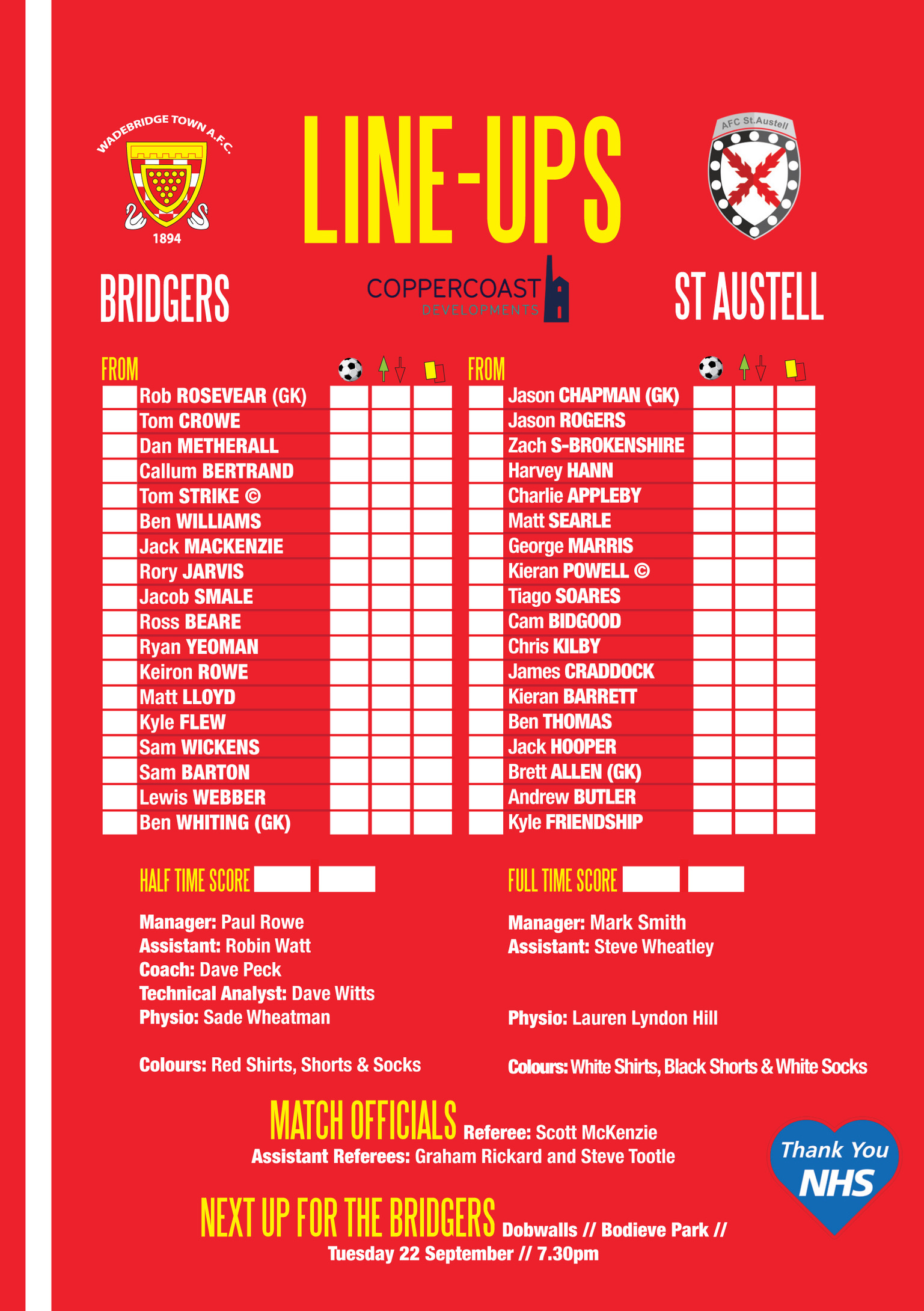 We welcome the players, supporters and officials of St Austell to Bodieve Park on Tuesday evening.